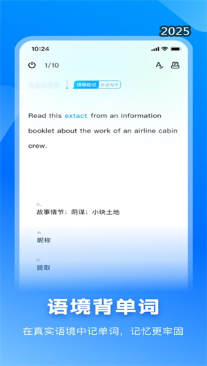 愛語境App提供多種真題題型,包括詞文串記、填詞還原語境、拼寫題、聽力題和詞根題等,全面提升語言運用能力。例如,用戶可以通過詞文串記功能記憶單詞的上下文用法,或通過填詞還原語境功能練習單詞的實際應用。此外,平臺還支持多維記憶功能,用戶可以通過多種題型強化記憶效果,提升詞匯量和語言運用能力。