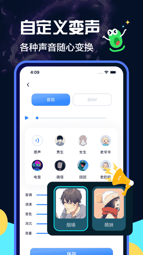 變聲器App,一款有趣的音頻app,能實(shí)現(xiàn)變音效果,男女互轉(zhuǎn),k歌變音,快來試試吧!