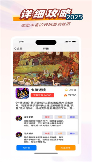 建立嚴格的評價防刷機制,通過游玩時長驗證和設備指紋識別確保評測真實性。平臺獨創的"避坑指南"功能,聚合玩家反饋的游戲槽點和優化建議,幫助新玩家快速了解游戲優缺點。每款游戲都設有優缺點雷達圖,直觀展示畫面、玩法、劇情等維度的玩家評分。