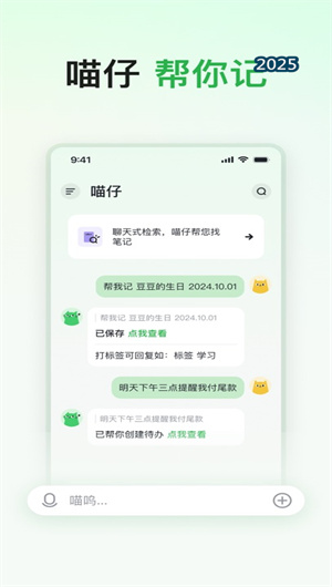 喵記多是一款革命性的AI智能筆記應(yīng)用,創(chuàng)新性地將自然語言處理技術(shù)與虛擬寵物養(yǎng)成系統(tǒng)相結(jié)合,為用戶提供前所未有的知識管理體驗(yàn)。該應(yīng)用搭載了專屬AI助手"喵仔"——一只具備情感交互能力的虛擬貓咪,不僅能幫助用戶高效整理信息,還能在互動中不斷成長。基于深度學(xué)習(xí)算法的智能分類系統(tǒng)可自動識別并歸類90%以上的輸入內(nèi)容,大幅提升信息處理效率。無論是碎片化知識收集、結(jié)構(gòu)化筆記整理還是智能提醒設(shè)置,喵記多都能通過多模態(tài)交互界面提供流暢的使用體驗(yàn)。