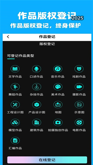 創作家APP提供從作品備案到版權登記的完整服務鏈,涵蓋著作權登記、商標申請和專利申請等專業領域。內置的智能填表系統能自動提取作品關鍵信息,生成符合官方要求的申請材料,準確率達92%。針對不同創作類型,提供定制化的權利說明模板和授權協議范本,降低法律門檻。