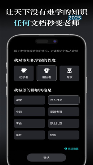 用戶可根據個人偏好,調整虛擬教師形象、講解風格和語音語調。平臺提供“嚴謹課堂”“暴躁老哥”“陽光甜妹”等多種風格,甚至可模擬文壇巨匠進行講解。通過情感計算模型和語音合成(TTS)技術,AI 教師能精準適配用戶的學習習慣,讓知識吸收更自然。此外,用戶還能調整講解深度(如“初學者”或“專家模式”),實現個性化學習體驗。