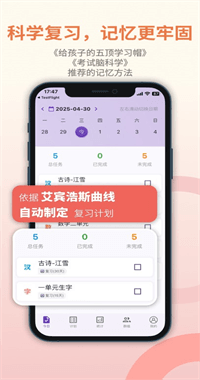 2. 艾賓浩斯強化引擎: 基于10萬+學生樣本優化復習算法,在1天、2天、4天等7個記憶節點自動推送復習任務。測試顯示,古詩文記憶效率提升80%,數學公式長期記憶率92%,較傳統復習模式節省40%時間。