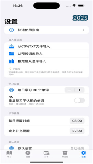 1. AI智能陪練:革命性的"語境生成引擎"為每個單詞自動創建3-5個例句,"難度自適應系統"根據用戶水平調整句子復雜度。創新的"錯誤模式分析"識別用戶的記憶盲點,"個性化記憶提示"提供針對性記憶技巧。這些AI功能使記憶效率較傳統方法提升2.3倍,大幅縮短背詞時間。
