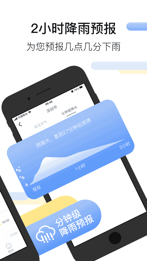 1、全天24小時后臺隨時待命,精準到2小時內降雨預報,為您播報幾點幾分下雨。