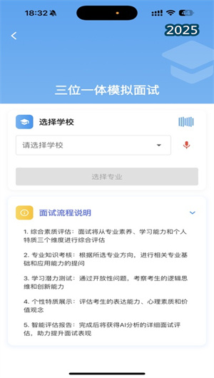 基于用戶的初始能力測評結果,系統會自動生成階梯式訓練方案,從基礎問答到高階案例分析循序漸進。通過弱點識別算法,會重點強化用戶在表達能力、專業知識等方面的薄弱環節。平臺特有的三位一體專項訓練為考生量身定制符合招生標準的模擬面試,包含自我介紹、觀點闡述等必考環節,歷年用戶平均得分提升25分。