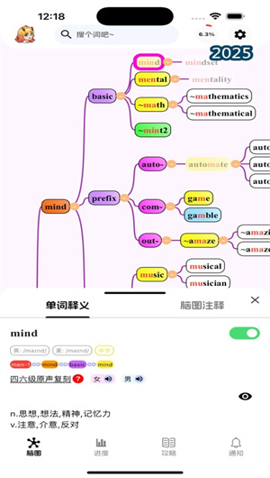 麒麟單詞的語義網絡分析器能自動將單詞分解為詞根、前綴、后綴等要素,生成多維度的記憶聯想圖譜。動態導圖編輯器允許用戶自定義添加圖像、例句和個性化記憶提示,構建專屬記憶網絡。跨詞關聯引擎會智能推薦相關詞匯,幫助用戶建立單詞家族體系,實現舉一反三的學習效果。
