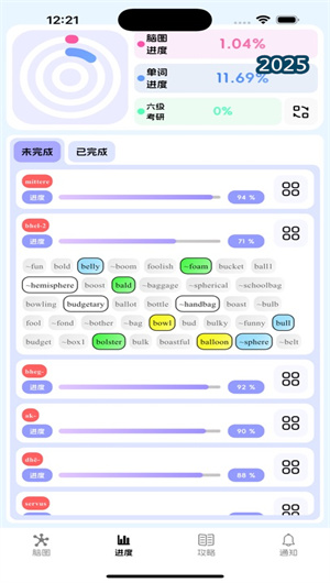學習數據看板實時展示記憶進度、熟練度和薄弱環節,幫助用戶把握學習方向。成就激勵系統通過勛章、排行榜等方式增強學習動力。云端同步功能可在多設備間無縫切換學習進度,支持離線學習和數據自動同步。