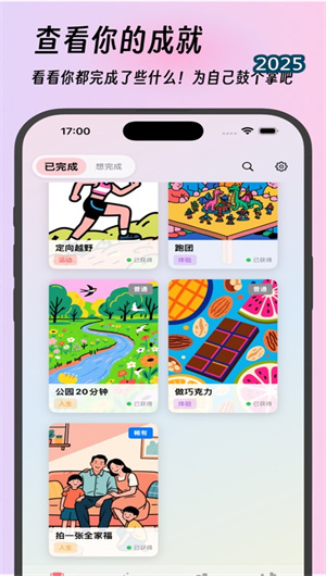 呈跡采用雙列表架構,分別管理"已完成"和"想完成"的成就。通過多媒體附件功能,用戶可為每個成就添加照片、文字感悟和地理標記。創新的稀有度評級系統根據社區完成比例自動標注成就的獨特程度,激勵用戶挑戰更高難度目標。數據統計顯示,使用該功能的用戶嘗試新體驗的頻率提升55%。