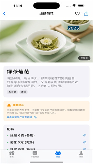 茶養(yǎng)的茶方知識(shí)圖譜收錄80+經(jīng)過中醫(yī)專家認(rèn)證的經(jīng)典配方,涵蓋六大茶類及代用茶。每款茶方均標(biāo)注四氣五味屬性,詳細(xì)說明君臣佐使配伍原理。用戶可通過多維篩選系統(tǒng)按功效(如清熱、溫補(bǔ))、體質(zhì)適配度(如陽虛、濕熱)、季節(jié)時(shí)令等條件精準(zhǔn)查找。茶方收藏夾支持自定義分類,方便建立個(gè)人養(yǎng)生茶譜。