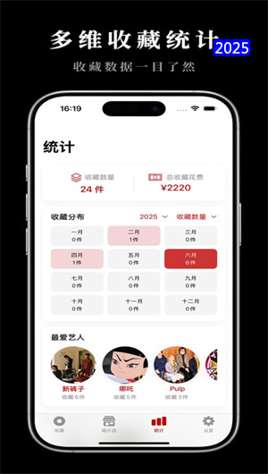 唱片柜的統(tǒng)計(jì)儀表盤實(shí)時(shí)顯示收藏總量、花費(fèi)趨勢(shì)等關(guān)鍵指標(biāo),收藏?zé)崃D直觀展示不同年代、風(fēng)格的收藏分布。平臺(tái)的藝人分析模塊統(tǒng)計(jì)最愛(ài)藝人排名,格式分析功能比較黑膠、CD等不同介質(zhì)的收藏比例。年度報(bào)告功能生成精美的可視化總結(jié),分享率高達(dá)78%。