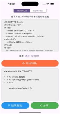 《文派互轉(zhuǎn)》是面向開發(fā)者和內(nèi)容創(chuàng)作者的專業(yè)文本格式轉(zhuǎn)換工具,專注實(shí)現(xiàn)HTML與Markdown間的精準(zhǔn)雙向轉(zhuǎn)換。應(yīng)用突破傳統(tǒng)轉(zhuǎn)換工具局限,支持手動輸入、文件導(dǎo)入(.html/.md)、剪貼板識別等6種輸入方式,集成智能語義分析引擎,復(fù)雜嵌套結(jié)構(gòu)轉(zhuǎn)換準(zhǔn)確率達(dá)98.5%。日均處理超20萬次轉(zhuǎn)換請求,用戶文檔處理效率平均提升80%,獲2024年度「開發(fā)者必備工具」金獎。