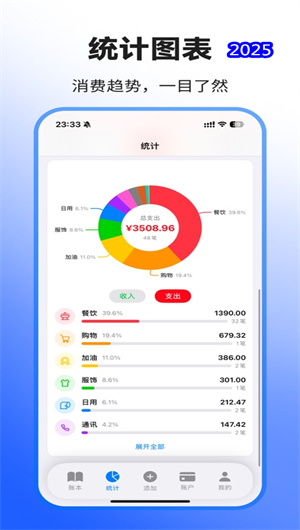 徠財的財務分析模塊提供日/周/月/年多維度收支報表,通過環(huán)形圖、柱狀圖等12種可視化形式展示消費結構。消費趨勢分析功能可識別異常支出和潛在浪費,預算管理系統(tǒng)支持設置分類限額并實時監(jiān)控。凈資產看板聚合所有賬戶余額和投資價值,提供清晰的財務狀況總覽。對比分析功能可跨周期比較消費變化,幫助用戶優(yōu)化支出習慣。