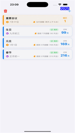 倒數(shù)日App的歷法轉(zhuǎn)換引擎可自動(dòng)計(jì)算農(nóng)歷與陽(yáng)歷對(duì)應(yīng)關(guān)系,支持農(nóng)歷生日、傳統(tǒng)節(jié)日等特殊日期的倒計(jì)時(shí)。用戶只需輸入一次農(nóng)歷日期,系統(tǒng)便會(huì)永久記錄并每年自動(dòng)更新,徹底解決"忘記親人生日"的煩惱。獨(dú)特的閏月處理機(jī)制確保農(nóng)歷計(jì)算的絕對(duì)準(zhǔn)確,即使遇到閏四月等特殊情況也能正確顯示。
