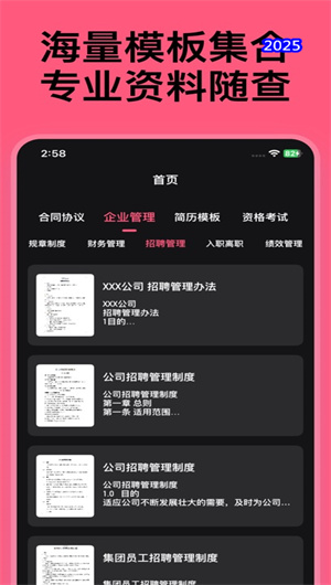 熱門文庫構建了完善的"行業(yè)分類體系",包含合同協議、企業(yè)管理、簡歷模板等15個大類200+子類。"模板中心"提供經過律師審核的標準合同范本,涵蓋股東協議、勞動合同等常見法律文書。"資料集市"匯聚各行業(yè)分析報告、市場數據,每日新增資源量超過5000份,滿足用戶多樣化需求。