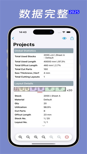 創新的"余料追蹤系統"自動記錄每次切割產生的剩余材料,"智能匹配算法"會優先使用庫存余料進行新方案計算。"余料預警功能"提醒可用材料即將耗盡,"余料可視化"展示直觀的庫存狀態,幫助用戶實現"零浪費"生產目標。
