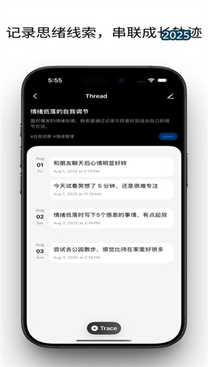 思線(Threadly)APP通過創新的時間線敘事方式和智能內容關聯技術,重新定義了個人記錄的意義。它將碎片化的生活點滴轉化為連貫的生命故事,讓用戶清晰看到事件因果、情緒流動和成長軌跡。無論是項目追蹤、事件梳理還是情感記錄,思線都提供了一種更自然、更有洞察力的方式。隨著持續的功能優化和算法升級,思線將繼續引領個人知識管理的新范式,幫助每個人發現生活中隱藏的脈絡與意義。