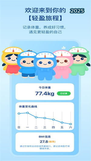 1. 應用提供智能體重記錄功能,通過趨勢分析算法自動生成體重變化曲線,結合線性回歸預測展示減重進度。系統支持多指標關聯分析,將體重數據與飲食、運動記錄進行交叉比對,生成個性化建議報告。這些功能使用戶能夠直觀掌握健康趨勢,調整管理策略。