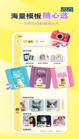 2. 動(dòng)態(tài)模板庫(kù)管理:內(nèi)置千款創(chuàng)意模板庫(kù),包含節(jié)日限定特輯(如圣誕、春節(jié)主題)、城市地標(biāo)專區(qū)(埃菲爾鐵塔、自由女神像背景)及萌寵名畫(huà)聯(lián)動(dòng)(將寵物融入《蒙娜麗莎》等名畫(huà))。模板庫(kù)實(shí)行每日N+更新機(jī)制,通過(guò)熱點(diǎn)追蹤系統(tǒng)及時(shí)推出流行IP聯(lián)名模板,確保內(nèi)容始終新鮮有趣。