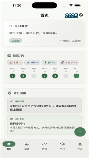 基于用戶行為數據(如卡片復習正確率、日記情感傾向、禪修堅持度),水滴自適應引擎會動態(tài)調整學習推薦策略。對于教言掌握度低的用戶,自動增加同主題卡片的曝光頻率;對于禪修中斷頻繁者,推送“微習慣”養(yǎng)成計劃(如每日5分鐘起步)。系統還集成協作過濾算法,匿名對比相似用戶群體的修行模式,提供優(yōu)化建議(如“85%的用戶在晨間念誦效率更高”),促進修行精進。