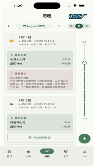 水滴APP提供結構化的日記記錄功能,用戶可通過文字、語音或圖片記錄每日聞思內容、念誦次數(如佛號/咒語計數)及禪修體驗。系統采用自然語言處理(NLP)技術對日記內容進行情感分析,生成心境波動曲線圖,并自動關聯相關教言卡片。例如,當用戶記錄“今日禪修散亂”時,系統會自動推送“專注力修煉”主題的ANKI記憶卡片,并建議復習相應教言。同時,支持為每條記錄添加自定義標簽(如“八正道”、“四諦”),便于后期檢索與統計。