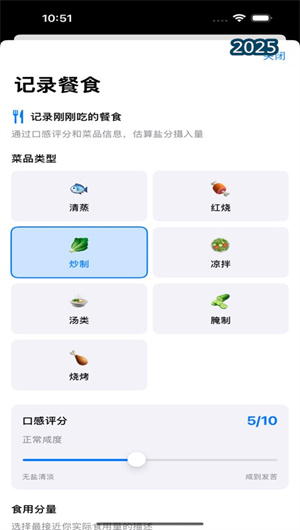 1. 智能餐食記錄系統(tǒng):少鹽App提供全面膳食記錄功能,支持用戶記錄主食類別、湯品類目、小菜類型和零食種類等多種餐飲形式。通過咸味評級系統(tǒng)(1-10分標(biāo)準(zhǔn))和分量比例控制(1/4、1/2、3/4、全部四個等級),結(jié)合鹽分來源分析技術(shù),系統(tǒng)能夠精準(zhǔn)區(qū)分調(diào)料添加、食材本底和加工食品中的鹽分含量,為后續(xù)的智能估算計(jì)算提供準(zhǔn)確數(shù)據(jù)基礎(chǔ)。