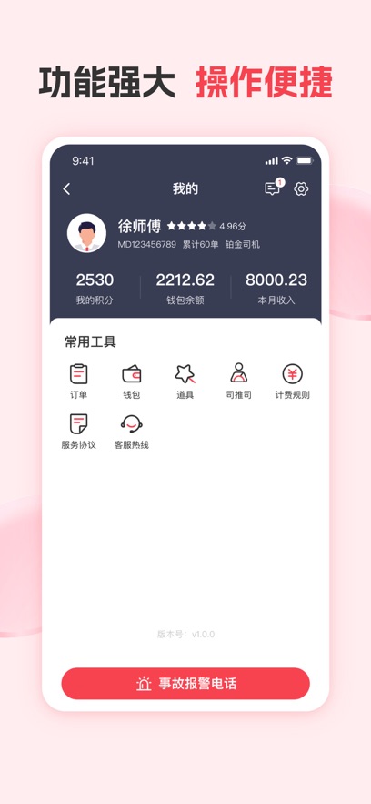 1、專為司機(jī)量身設(shè)計(jì):馬達(dá)單多多充分考慮代駕司機(jī)的使用習(xí)慣,界面設(shè)計(jì)直觀簡潔,功能模塊緊密貼合工作流程,確保司機(jī)能夠以最低學(xué)習(xí)成本快速上手使用。