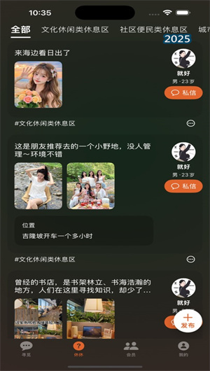 用戶可通過休息偏好標簽庫(如“安靜優先”“充電便利”)篩選目的地,并利用輕交流互動面板向同行者發起話題或加入討論組。覓休休社交圖譜算法會基于共同興趣自動推薦潛在好友,而打卡積分系統和經驗值成長體系則激勵用戶持續分享休息體驗,形成良性互動循環。