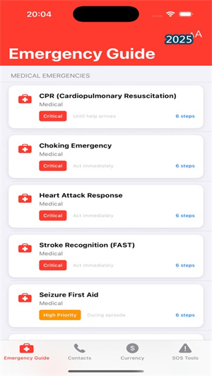1. 離線急救指南功能內置醫療知識圖譜,涵蓋CPR心肺復蘇、燒傷處理、窒息急救、蛇咬傷處置、地震避險等20余類應急場景的詳細操作指引。系統采用步驟化呈現方式和高壓場景優化設計,通過可視化流程圖和語音提示功能指導用戶操作,支持多語言切換和字體放大顯示,確保在緊急情況下快速獲取準確信息。