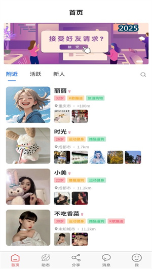 1. 興趣搭子匹配功能通過智能推薦引擎分析用戶的興趣標簽體系和活動偏好設置,采用多維度匹配算法精準推薦合適的搭子。用戶可發布健身搭子招募、徒步驢友征集或學習伙伴邀請,系統通過實時匹配通知和智能排序展示幫助用戶快速找到志同道合的伙伴,匹配準確率提升85%。