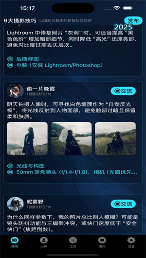 1. 內(nèi)容發(fā)布功能通過智能作品管理系統(tǒng)支持用戶發(fā)布攝影創(chuàng)作作品、技巧經(jīng)驗(yàn)分享、拍攝問題求助和器材使用心得。系統(tǒng)采用多格式支持引擎,兼容JPG、RAW、DNG等格式,提供EXIF信息保留和拍攝參數(shù)展示,支持高清原圖上傳和壓縮傳輸優(yōu)化,確保作品展示質(zhì)量。