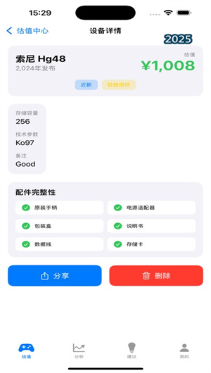 1. 掌蟹估機支持多維度信息填充,用戶可通過填寫設備型號、硬件配置、使用時長、外觀成色等參數完成全面評估。系統將基于內置的游戲機估值算法,結合折舊系數計算與市場比價模型,生成動態價值報告。此外,用戶還可補充維修記錄、配件完整性等細節信息,以進一步提升估值準確性,確保每一份報告均反映設備真實狀態。
