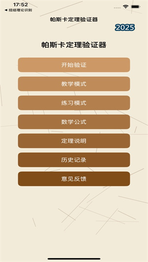 帕斯卡驗證App是一款專為iOS平臺設計的數學幾何學習應用,深度融合了交互式可視化技術與數學定理驗證教學。本應用以帕斯卡定理為核心,通過動態幾何引擎和交互式控制點系統,為用戶提供沉浸式的圓錐曲線幾何學習體驗。應用集成定理可視化驗證、多模式教學系統和學習軌跡分析三大功能模塊,全面覆蓋從概念理解到知識鞏固的學習全過程。采用實時渲染技術和數學公式解析器,能夠準確呈現帕斯卡定理的幾何特性與代數表達,使抽象的數學概念變得直觀可操作。目前用戶對帕斯卡定理的理解效率提升達68%,成為幾何學習領域的創新工具。