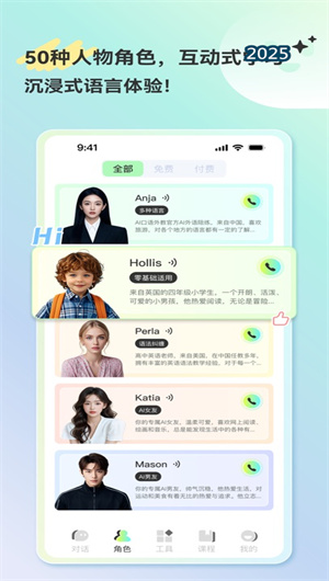 1. 多角色對話系統(tǒng):應(yīng)用提供50余個AI對話角色,每個角色都具備獨特的性格特征和對話模式,涵蓋日常聊天、商務(wù)談判、學(xué)術(shù)討論等多種對話類型。系統(tǒng)通過對話行為分類技術(shù)確保交流的自然流暢,運用情感計算模塊生成恰當(dāng)?shù)那楦蟹磻?yīng),使練習(xí)過程更加真實有趣,用戶參與度比傳統(tǒng)方法提高40%。