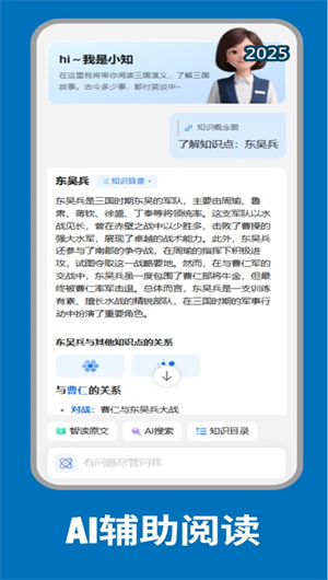 小知伴讀的一大特色是預置了經過嚴格篩選與標注的公版文學著作與政策文件庫。這些內容并非簡單的文本堆積,而是經由AI深度處理,形成了高度結構化的領域知識庫。這意味著用戶查詢到的信息具有高度的準確性和權威性,為學術引用和研究分析提供了可靠的數據基礎,確保了學習與研究結果的嚴謹性。