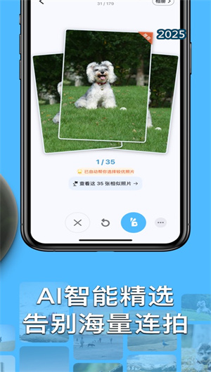 拾光說的相似照片處理功能是其核心技術,AI預選引擎會自動分組連拍照片并推薦最佳一張。用戶可右滑快速采納建議,或進入精選工作臺進行精細調整。工作臺提供同步縮放、對比查看和畫質評估工具,讓用戶能全面掌控每一處細節,徹底解決選擇困難問題。