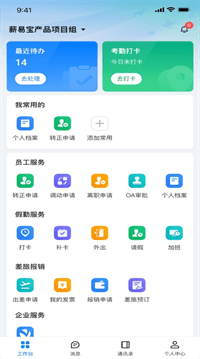 薪易寶v1.0是一款專為企業(yè)打造的一站式員工服務(wù)應(yīng)用,覆蓋考勤管理、OA 審批、入轉(zhuǎn)調(diào)離等核心人事功能。平臺(tái)通過(guò)數(shù)字化手段,幫助企業(yè)優(yōu)化人力資源管理流程,提高辦公效率,提升員工體驗(yàn)。無(wú)論是日常工作中的考勤打卡,還是涉及跨部門(mén)的審批流轉(zhuǎn),亦或是員工全生命周期的人事操作,都能在該平臺(tái)上實(shí)現(xiàn)統(tǒng)一管理與高效運(yùn)行。