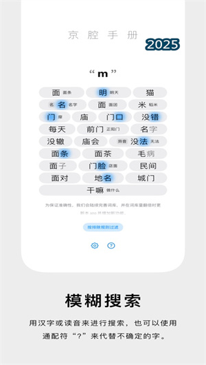 1. 智能檢索與多維度查詢系統(tǒng):京腔手冊(cè)APP提供快速模糊搜索和精確條件查詢雙重檢索模式,支持通過(guò)漢字通配符、拼音首字母及音素組合進(jìn)行全方位檢索。獨(dú)特的地區(qū)過(guò)濾器功能可按城區(qū)發(fā)音差異篩選結(jié)果,配合年代標(biāo)記系統(tǒng)展示詞匯的歷史演變。所有檢索結(jié)果均原生支持國(guó)際音標(biāo),并可選擇拼音注音或注音符號(hào)等多種注音方式,滿足不同用戶群體的閱讀習(xí)慣,查詢準(zhǔn)確率達(dá)到98%。