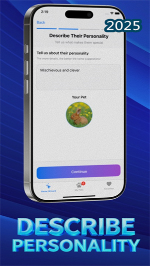 采用精美滑動界面設計,用戶可通過右滑保存功能收藏心儀名字,使用左滑跳過操作排除不合適的選項,逐步構建個性化名字收藏夾。每個名字以精美卡片形式呈現,配合迷人背景故事詳細闡釋命名與寵物個性的契合點,使選擇過程既直觀又充滿樂趣,大幅提升用戶參與度。