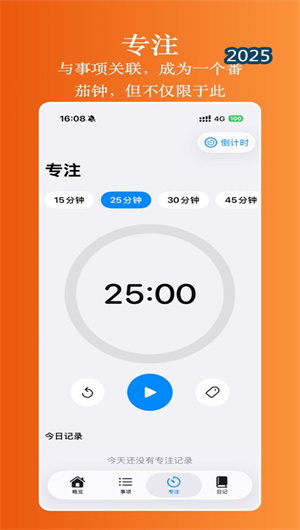 應(yīng)用深度融合番茄工作法核心機制,提供智能的專注時段規(guī)劃與打斷管理功能。每個番茄時鐘單元都配備完整的專注度評估系統(tǒng),通過量化指標衡量用戶的專注質(zhì)量。創(chuàng)新的專注成果記錄功能將每個番茄時段的工作成果與后續(xù)的情緒反饋相關(guān)聯(lián),而效率趨勢分析則長期追蹤用戶專注力的變化規(guī)律,這些專業(yè)工具顯著提升了用戶的時間管理能力與工作效率。