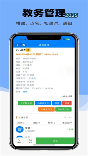 1. 智能化教務管理與多模式排課系統:虎鯨愛學App的核心功能在于其強大的智能排課系統,支持1V1教學、1VN班課等多種授課模式的靈活配置。系統內置的排課計劃功能可自動進行沖突檢測,有效避免課程安排重疊,同時支持批量調課、臨時停課等復雜場景的快速處理。通過課程管理模塊,教務人員可以直觀查看每個班級的課程進度、學員出勤情況,并實現在線選班、自主約課等便捷操作,將傳統需要數小時完成的排課工作縮短至分鐘級別,排課效率提升達65%。