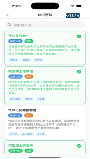 3. 系統(tǒng)化氣味學(xué)習(xí)與科學(xué)知識探索:云朵收集器App配備了專業(yè)的學(xué)習(xí)模塊,該模塊按照氣味家族分類(如果香、草木香、礦物香等)系統(tǒng)介紹從 “雨后泥土” 到 “玫瑰花香” 等各種氣味的化學(xué)成分、產(chǎn)生機(jī)理與文化象征。通過交互式的 “氣味解構(gòu)” 游戲,用戶可深入了解復(fù)雜氣味(如“咖啡香”、“舊書味”)的香氣組成,從而提升自身的嗅覺辨識力與氣味表達(dá)能力。