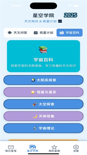 2. 階梯化星空學(xué)院與自適應(yīng)學(xué)習(xí)路徑:本App構(gòu)建了結(jié)構(gòu)嚴(yán)謹(jǐn)?shù)男强諏W(xué)院,其課程體系嚴(yán)格劃分為初級、中級與高級三個難度階梯,內(nèi)容由淺入深覆蓋星座神話、天體力學(xué)乃至宇宙學(xué)前沿。每個階段均配有相應(yīng)的知識問答用于鞏固學(xué)習(xí)成果,并關(guān)聯(lián)觀星計劃提供實(shí)踐指導(dǎo)。用戶可根據(jù)自身水平選擇起點(diǎn),系統(tǒng)會基于測試結(jié)果推薦個性化學(xué)習(xí)路徑,確保學(xué)習(xí)體驗既具挑戰(zhàn)性又不會令人望而生畏。
