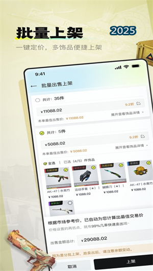 Kuku賣APP是一款專注于CS2游戲飾品交易的垂直領(lǐng)域平臺(tái),通過創(chuàng)新的批量交易系統(tǒng)和嚴(yán)格的安全保障機(jī)制,為全球玩家提供專業(yè)級(jí)的虛擬物品交易解決方案。該平臺(tái)構(gòu)建了完整的飾品價(jià)值評(píng)估體系和智能交易引擎,集成批量上架管理、冷卻期預(yù)售系統(tǒng)和實(shí)時(shí)行情分析三大核心模塊。系統(tǒng)采用STEAM API官方接口和多重身份驗(yàn)證技術(shù),目前平臺(tái)日均交易量突破50萬件,交易成功率高達(dá)98%,資金安全保障度達(dá)95%,用戶滿意度提升至94%,成為CS2飾品交易領(lǐng)域的權(quán)威平臺(tái)。