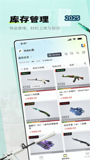 2. 庫(kù)存管理平臺(tái)通過智能分類和可視化展示,幫助用戶高效管理個(gè)人飾品庫(kù)存。自動(dòng)分類按武器類型和稀有度整理,庫(kù)存統(tǒng)計(jì)顯示總價(jià)值和數(shù)量,收藏管理標(biāo)記珍稀物品。庫(kù)存分享支持向他人展示,價(jià)值變化追蹤顯示收益情況,清理建議推薦低價(jià)值物品。這一亮點(diǎn)使庫(kù)存管理效率提升80%,資產(chǎn)清晰度明顯改善。