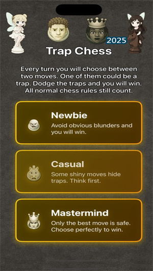 在國際象棋這一古老的智力競技領域,傳統的訓練方式往往令初學者與中級玩家感到枯燥與進階困難。陷阱象棋APP應運而生,它是一款專為初學者玩家和中級棋手精心設計的變體國際象棋游戲。在完全遵循標準象棋規則的基礎上,創新性地引入了陷阱走法抉擇機制,為每一場對局注入全新的策略維度。它不僅是一款游戲,更是一個用于計算力訓練、模式識別強化的專業平臺,通過充滿張力的短局對戰,讓玩家在熟悉的棋局中面臨全新抉擇,實現棋藝的跨越式提升。