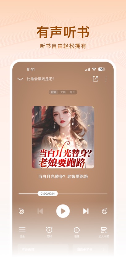 先進的AI智能語音系統提供男女聲、多年齡段等多樣化音色選擇,情感合成技術精準演繹作品中的情緒變化,營造擬真播講體驗。聽書設置面板支持語速精細調節、定時關閉和背景播放,場景自適應系統根據通勤、睡前等不同使用場景智能優化聽書參數。離線下載功能允許用戶緩存音頻內容,這些聽書功能使用戶日均聽書時長提升至90分鐘,真正實現了閱讀場景的全覆蓋。