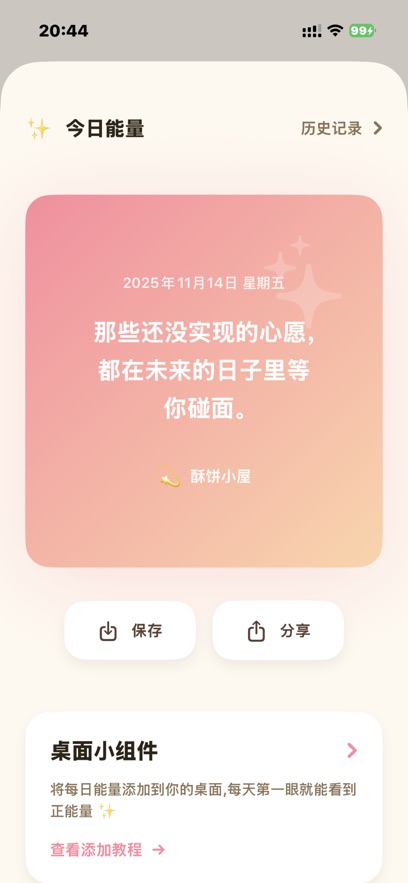 創新的每日能量系統每天推送一張精心設計的治愈系能量卡片,智能推送算法基于用戶近期情緒特征選擇最契合的卡片內容。iOS桌面小組件功能允許用戶將能量卡片擺放在手機主屏幕,即時提醒系統在最佳時間推送當日能量提示。卡片收藏系統支持用戶保存特別有共鳴的能量語錄,這些能量功能使用戶每日積極情緒提升60%,提供了持續的心靈滋養。