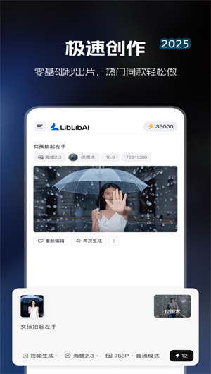 1. “AI導演模式”:從劇本到短片的智能視頻工場:哩布哩布App最引人注目的亮點是其 “AI導演模式” 。在此模式下,用戶只需輸入一個故事梗概或分鏡腳本,系統便能自動調用多個AI模型協同工作:先根據腳本生成關鍵幀畫面,再通過圖生視頻模型生成動態片段,接著自動匹配背景音樂、音效和AI語音旁白,最后應用智能剪輯與轉場特效,輸出一段完整的、帶有敘事性的短視頻大片。這幾乎將專業視頻制作的門檻降到了零,讓每個人都能成為自己故事的導演。