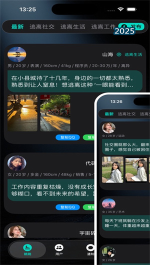 1. 結構化“生活困境”發布與多維支持系統:陌桃App的核心功能是其精心設計的 “破繭日記” 發布模塊。用戶在此不僅可以自由書寫當前的生活困局(如職業倦怠、情感困境、生活習慣頑疾、地域遷徙焦慮等),更可以通過結構化標簽(如“35歲轉型”、“社交恐懼”、“城市逃離計劃”)對困境進行分類,并附加期望改變方向與需要幫助類型(如“需要經驗分享”、“需要監督打卡”、“需要精神鼓勵”)。每條發布都會進入相應的話題社區,其他用戶可通過文字鼓勵、語音分享、實用資源鏈接或發起一對一深度聊等多種形式提供支持,形成以具體問題為中心的微型支持社群。平臺數據顯示,超過 68% 的深度求助帖在24小時內獲得了超過10條實質性幫助回復。